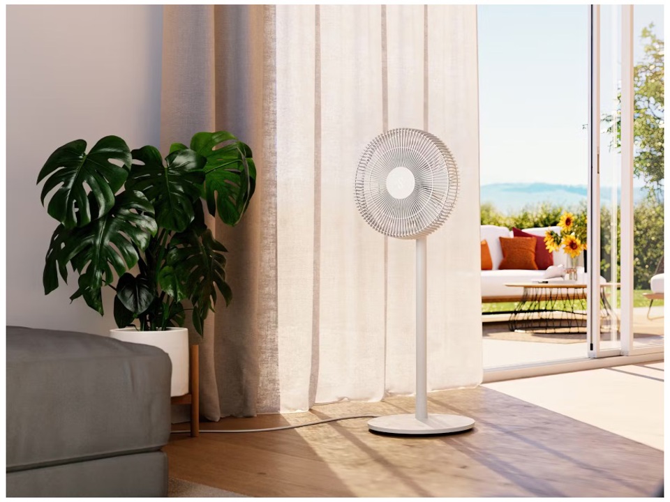 Con la sua tecnologia a risparmio energetico, il ventilatore Finn offre una piacevole freschezza nelle giornate calde. Finn può essere utilizzato come ventilatore a piantana, da pavimento o da tavolo e oscilla silenziosamente da sinistra a destra per ottimizzare la circolazione dell'aria nella stanza. I suoi 8 livelli di velocità con una distanza del vento fino a 8 metri, la modalità brezza naturale e il telecomando offrono il massimo comfort. E grazie alla modalità notturna e a un timer di spegnimento da 1 a 8 ore, Finn assicura un sonno ristoratore.